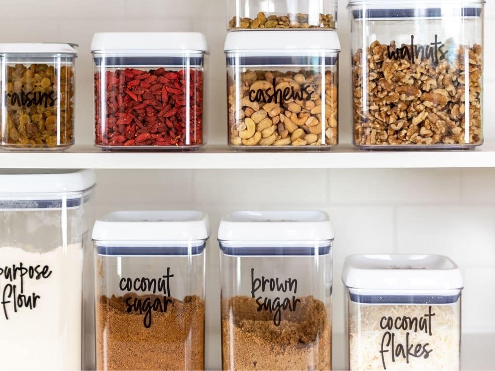 Look for airtight containers and canisters with easy-to-open locking lids- these are the kind I use most often in client pantries because they actually stay shut and hold up well in our climate.